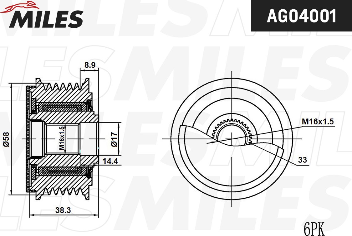 Шкив генератора WAI для Lexus GS III 2005-2011. Артикул 24-82263